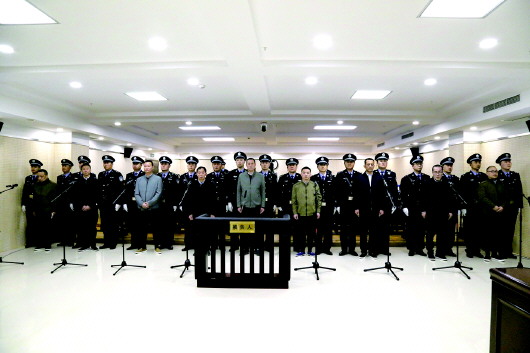 8时许,庄严的法庭内国徽高悬,审判长敲响法槌、宣布开庭。在法警押解下,被告人钟世峰、于有峰、王绪章、陈军、王秀启、郝东代、杨小青、葛德高、张善岩进入法庭。