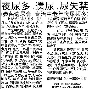 夜尿多专线:400-088-2501