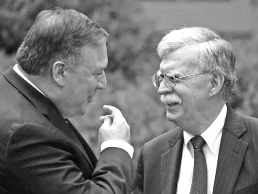 美国国务卿蓬佩奥(左)与美国总统国家安全事务助理博尔顿。