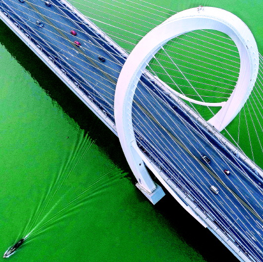 ▲优美的“麻花”白沙大桥。
