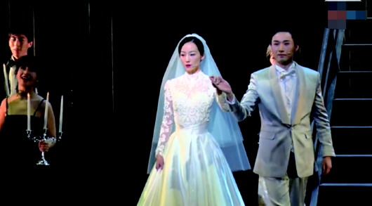 女星韩雪在演出音乐剧中播放录音。