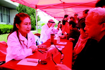 为进一步提升仙河区域职工家属健康水平,4月20日,胜利油田工会联合中心医院开展“互助有爱一家亲 医疗专家一线行”义诊咨询活动。一上午的时间里,来自中心医院骨科、眼科、肝病科、整形美容与创面修复等多个学科的10名专家现场为300余名职工家属进行内外科疾病诊断、治疗方案建议、用药咨询、体检报告权威解读诊断,急救中心专家还现场开展了心肺复苏急救培训,赢得职工家属一致好评。与此同时,20多名志愿者细心为等待就诊的员工家属做好引导服务工作,并发送互助保障知识宣传册150份。