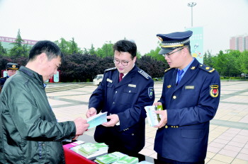 城市管理局工作人员向群众宣传版权保护相关政策。
