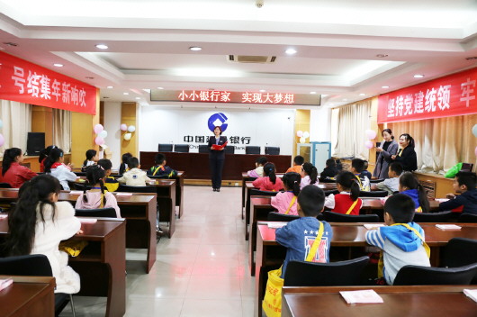 上午九点半,小记者们在建行德城支行营业室后厅集结完毕,对银行的一切感到陌生又好奇,一张张稚嫩的小脸上挂着无比兴奋与激动的表情。