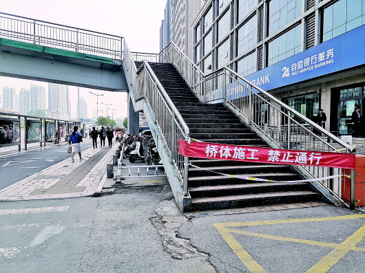 ◤过街天桥被临时封闭。