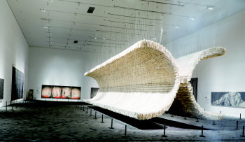 五一期间济宁市美术馆将举办一场“水墨精神”主题展。在展厅外记者看到,几间展厅都已经基本布置完成,除了一批知名的美术作品将于五一期间亮相之外,还有一些非常前卫的装置展品布置其中,让市民们在这里品尝到一场前所未有的文化大餐。