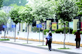时下春暖花开,在风景宜人的太白湖新区,谭岗路及许庄路上的一株株流苏花也悄然开放。纤长的花瓣开满树冠,好似白雪覆盖一般。洁白的流苏花开满树冠,团团簇簇,如雪如云,成为一道如同雪挂的美丽景致。走在路上馨香四溢,沁人肺腑。路人纷纷拿出手机,驻足拍摄。