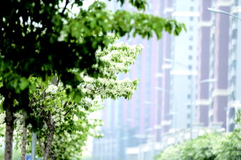 流苏花是国内常见的庭园观赏植物,每年4月盛开,因为花色雪白,大量花瓣随风飘扬的姿态,素有“四月雪”美名。此次谭岗路及许庄路绿化面积约9000平方米,大面积栽植流苏,初夏满树白花,如覆霜盖雪,清丽宜人,打造“流苏大道”景观。其树形高大优美,清丽宜人,花冠白色,4深裂,裂片线状倒披针形,雄花雄蕊2,雌花柱头2裂。