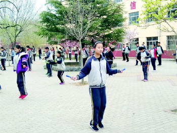 跳绳比赛 为丰富校园文体生活,培养学生自强进取的拼搏精神,近日,沂源县鲁村中学举行了“我快乐,我健康”跳绳比赛。 (袁恒成 任德志)