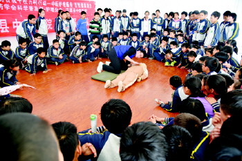 中医药知识宣讲 为让学生学习中医药知识,近日,沂源县燕崖中学邀请县中医院志愿服务队到校开展了中医药护理健康知识宣讲活动。 (陈作涛 杨希艳)