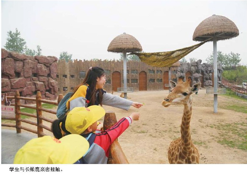 “羊驼太可爱了,我差一点就摸到它了。”乘坐小火车,同学们穿梭在非洲草原、高寒山地、澳洲山林、狂野地带、亚洲草原5大区域,在近乎原生态的自然环境下,感受来自五大洲动物的热情。