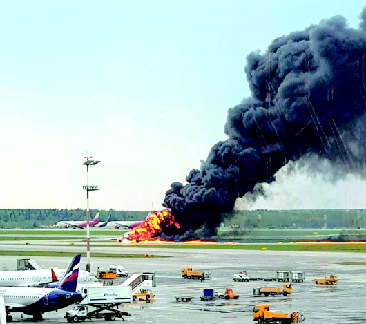 5日,俄航一架客机在莫斯科谢列梅捷沃机场迫降时起火。 新华社发