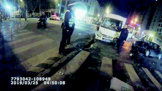 这是发生在3月25日凌晨的一起普通交通事故。监控视频显示,事故发生大约两分钟后,黑色轿车的驾车小伙走下了车。吊诡的是,事故发生了,小伙却并没有报警,也没有留下来跟对方驾驶人协商解决,而是一手捂着肚子,一手拿着手机,边打电话边摇摇晃晃走向了路口的超市。