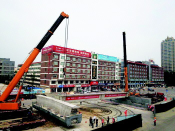 本报济宁5月6日讯(记者 李岩松 通讯员 王会良 冯云明 吴琼) 5月6日凌晨,历时110分钟,鲁南高铁高上1号特大桥上跨京沪高铁连续梁成功完成转体,跨过京沪高铁线路。这也是目前国内跨京沪高铁转体角度最大、吨位最重的转体梁。