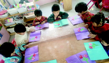 手工制作贺卡 为培养幼儿尊敬长辈、孝敬父母、关心他人的美德,近日,沂源县悦庄镇儒林集幼儿园小二班开展了手工制作贺卡活动。(任瑞艳 陈德芳)