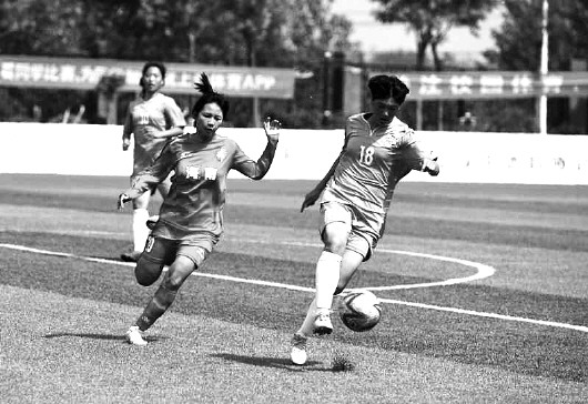 郯城一中女足(右)整体表现不错。 通讯员 房德华 摄