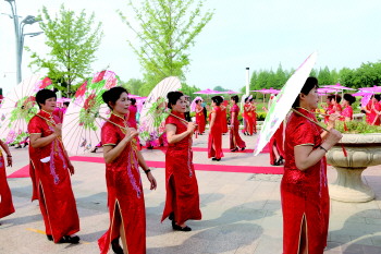 绰约的旗袍秀。旗袍模特们或手持纨扇、或肩靠油纸伞,并搭配古色古香的发饰,婀娜多姿,优雅前行。在旗袍的映衬下,模特们踏着整齐的节拍,缓缓踏步,更显娇媚、典雅,与太白湖美丽风景融为一体,形成一道靓丽别致的风景。