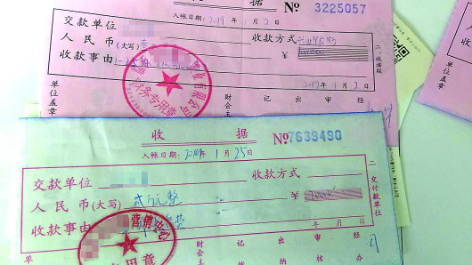 壹粉在“交2万抵4万”活动中拿到的收据,盖上了不同机构的公章。 受访者供图