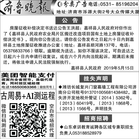齐鲁晚报 2019年05月15日