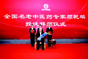 市中医医院隋晓琳、门玉娟、李瑞凤三位中青年医师以传统方式向颜乾麟教授行拜师礼,并献花敬茶。
