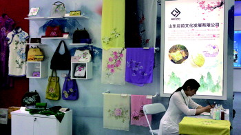 “这种中国风手绘产品具备鲜明的中国传统元素,包括丝巾、披肩、钱包等多个品种,是生活与文化相融合的艺术品,既实用又有收藏价值。”赵瑞丽告诉记者。