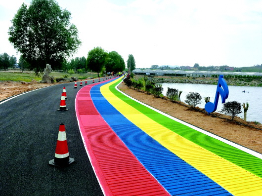 近日,一条音乐公路亮相枣庄市山亭区冯卯岩马湖景区。这段道路长280米,当驾驶人以35-40公里/时的速度匀速开过时,耳边会传来《歌唱祖国》的优美旋律。 本报记者 米娜 摄
