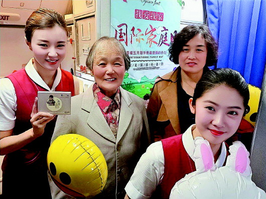 5月15日,是国际家庭日,山航鲁雁乘务组在SC4641青岛-延吉航班上,精心策划了“机上家庭”主题特色活动。