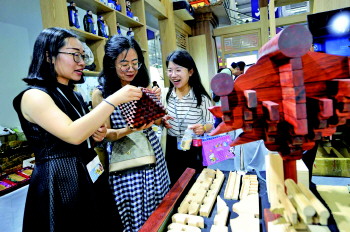 来自高新区的鲁班文化目前正在做一个体验基地的项目,让更多的孩子能够走进课堂,了解这些传统的技艺。负责人马明文是名80后,他用三年时间,他整理出了108种榫卯传统技艺,还原制作了33种实体模型。马明文说,传统技艺是一种文化的载体,不能束之高阁,而是应该让它走进普通百姓生活,除了让更多的人了解之外,也要利用对这些工艺进行创新改良,增加它的实用性。“‘多多’是一套模块,利用榫卯固定组装,通过变形,具有绘画桌、学步车、梯子等13种功能,已拿到国家专利,荣获工业设计大奖赛银奖。”在文博会上,他们展示一件孔庙建筑木构件摆件,又受到了很多观众的喜爱。