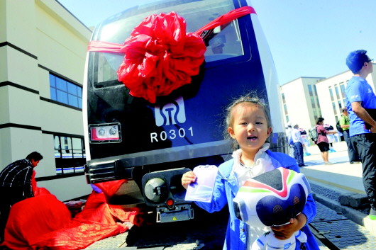 在接车仪式上,一位特殊的小嘉宾——王小蓝,用萌萌的表情和稚嫩的话语表达她对济南地铁3号线首列车的祝福。