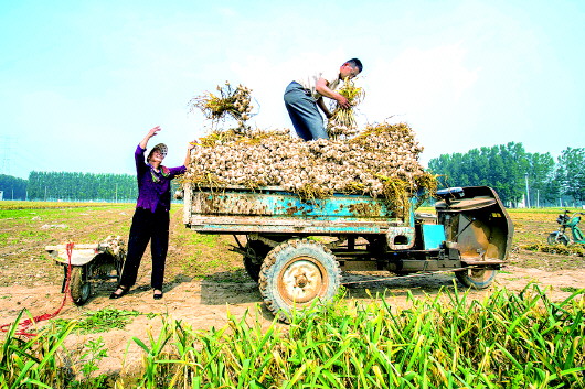 大蒜收获季。 李建辉 摄