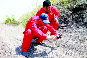 馒头矿泉水充饥 每天清晨6点,项目部的队员们准时起床,洗漱完毕匆匆吃点早饭,便两三个人分成一组,由作业车送到指定地点,进行现场土地踏勘举证。即使像吕树森这样年近50的老项目组长也不例外,作为这个项目的外业调绘工序负责人,他除了安排整体野外调绘工作外,自己也有具体的调绘任务。
