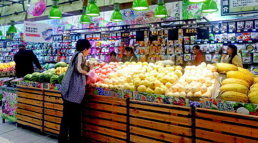 济南一市场内,市民正在挑选水果。
