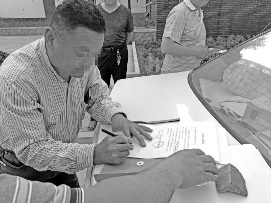 业户在回收协议书上签字。