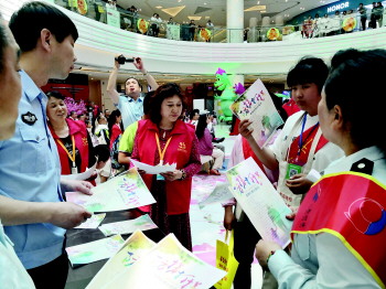 25日下午,在青岛奥克斯广场上,一场“让爱不丢失——‘国际失踪儿童日’爱心公益演唱会”举行。演唱会由青岛市微尘公益基金会、青岛市文明办、青岛市公安局等单位共同主办,青岛公交驾校、市北巴士公司红叶红志愿团队等共同承办。他们希望通过这场活动呼吁政府、民间组织和广大民众高度关注失踪儿童问题。江南寻亲团的志愿者们身着红色马甲,向过往市民发放宣传儿童防走失的单页,并组织志愿者义卖矿泉水。
