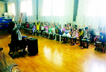 开设非洲鼓课程 本学期,沂源县荆山路