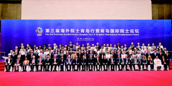 参加第三届海外院士青岛行暨青岛国际院士论坛的领导、嘉宾合影留念。