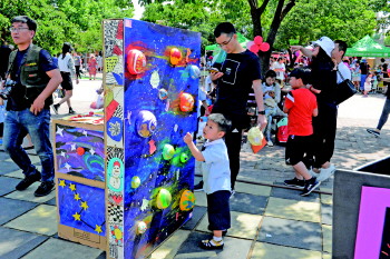 为让孩子感受到科技的魅力和游园的乐趣,八音河精心打造了包含吃、喝、玩、乐、学于一体的系列活动,在科技体验区,孩子们可以体验机器人等高科技产品,科学小实验让孩子们求知欲大增。在扎染工艺体验区,孩子们在棉布上作画,体验扎染,感受传统文化的魅力。在涂鸦区,孩子们变身小小画家,充分发挥想象,用画笔描绘心中的美好世界。游戏专区里有足球、指压板、套圈圈等体验项目,孩子们玩起来流连忘返。此外,能量补充站为孩子们提供点心与饮品,棒棒糖、泡泡器、小风扇等。一个小时的游园时间,孩子们玩得兴高采烈,家长们也乐在其中。