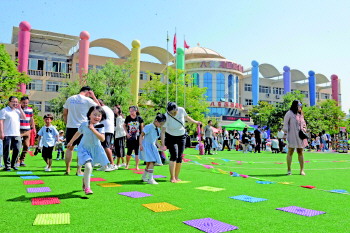 亲子指压板游戏,孩子们玩得津津有味。