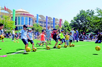 快乐足球,孩子们玩的很尽兴。
