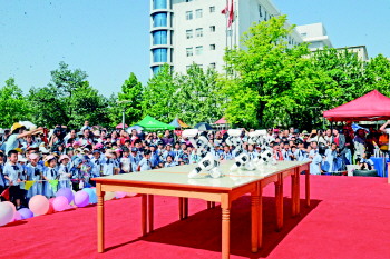 时尚动感的机器人表演吸引了孩子的目光。