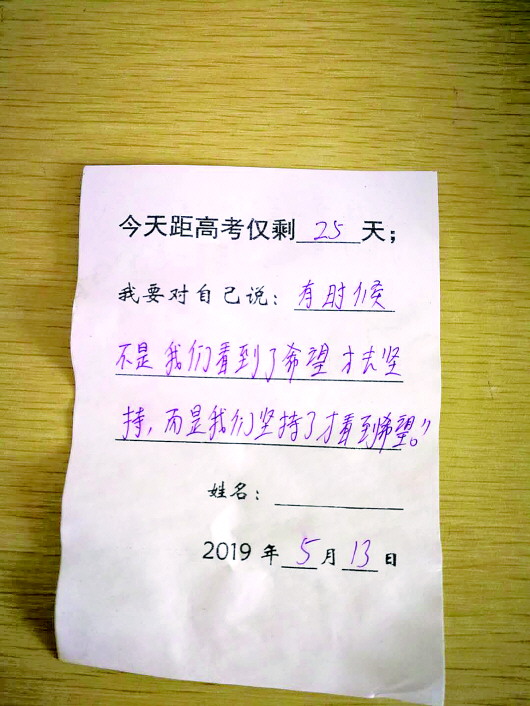 教室书桌上,能看到许多学生写下的励志便签。