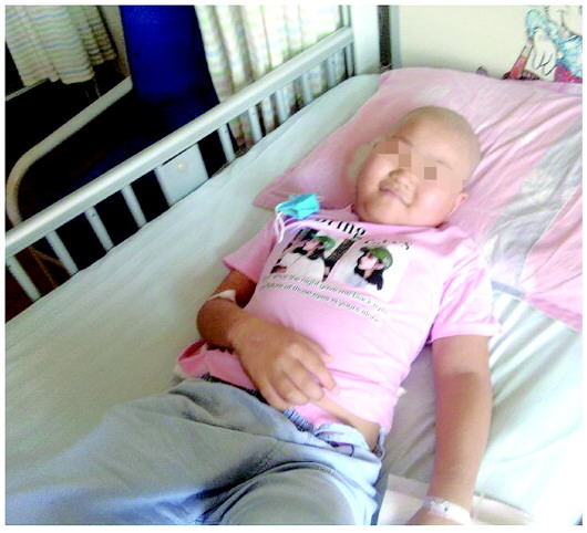 小馨悦穿着粉红色的T恤和白色的短裤,如果不是掉光了头发,她应该是个无比可爱又十分美丽的小姑娘。如果不是一场突如其来的大病,她或许跟同龄孩子一样,在上学识字、画画、算数。