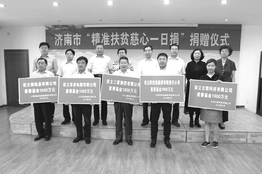 ◤在济南市“精准扶贫慈心一日捐”捐赠仪式现场,济南趵突泉酿酒有限公司认购1000万元慈善基金。