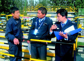 执法人员对企业进行现场执法检查