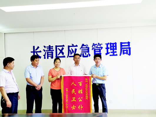 被困大学生的父母特意从德州赶到长清区应急管理局送上锦旗。