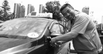 老马为出租车系上绿丝带。