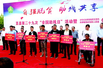 5月16日上午,在第二十九个全国助残日即将来临之际,莒县第二十九次“全国助残日”活动暨日照市福彩中心“暖心福彩 助残创业”销售点牌照发放仪式在莒县阎庄镇举行。