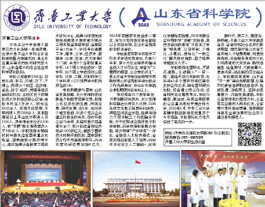 齐鲁工业大学坐落于国家历史文化名城—泉城济南,由原齐鲁工业大学和山东省科学院整合组建而成,是山东省重点建设的应用研究型大学、山东省最大的综合性自然科学研究机构。
