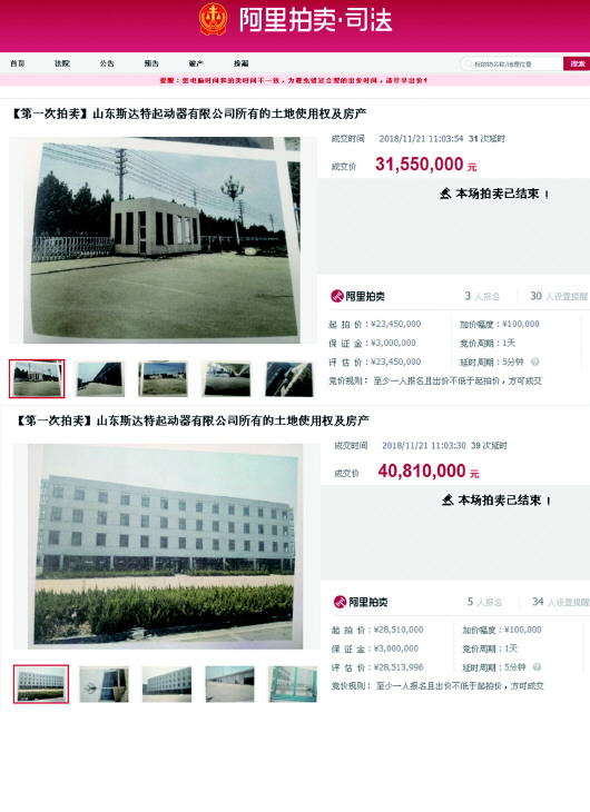 2018年11月21日,山东伊亲文化传媒有限公司(以下简称“伊亲传媒”)通过网络司法拍卖参与“山东斯达特起动器有限公司所有的土地使用权及房产”司法拍卖项目公开竞价。“两块地和附属厂房都在临沂城区外,分两个项目拍,一共是7236万。”伊亲传媒法定代表人徐丽介绍,经过多轮出价,公司以最高价胜出。当月29日,伊亲传媒缴纳完全部拍卖价款。