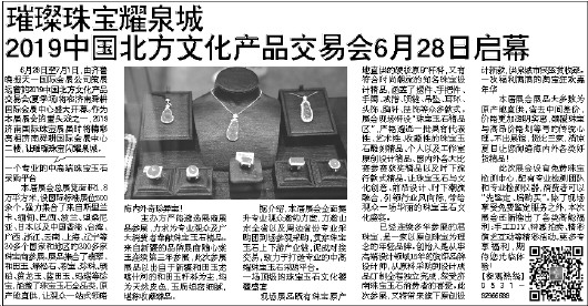 6月28日至7月1日,由齐鲁晚报天一国际会展公司策展运营的2019中国北方文化产品交易会(夏季场)将在济南舜耕国际会展中心盛大开幕。作为本届展会的重头戏之一,2019济南国际珠宝展届时将精彩亮相济南舜耕国际会展中心二楼,让璀璨珠宝闪耀泉城。